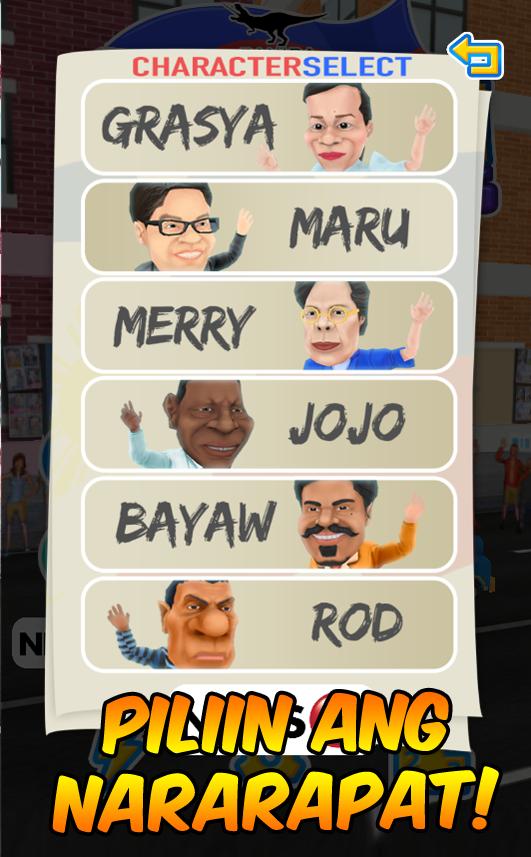 Un divertido juego de sátira política con la semejanza de los candidatos presidenciales filipinos de 2016, a saber: